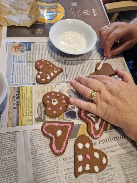 Wir feierten eine Woche lang Oktoberfest. Jeder, der hatte nutzte die Gelegenheit und kam im Dirndl. Wir stachen unsere eigenen Lebkuchenherzen aus und jeder verzierte sie individuell. Mit Schunkelmusik, Polonaise und Gesang verging die Woche.